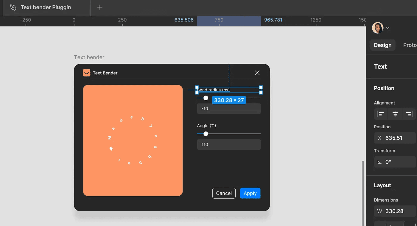 Link to the plugin in figma community — https://www.figma.com/community/plugin/1432714659139308535/text-bender