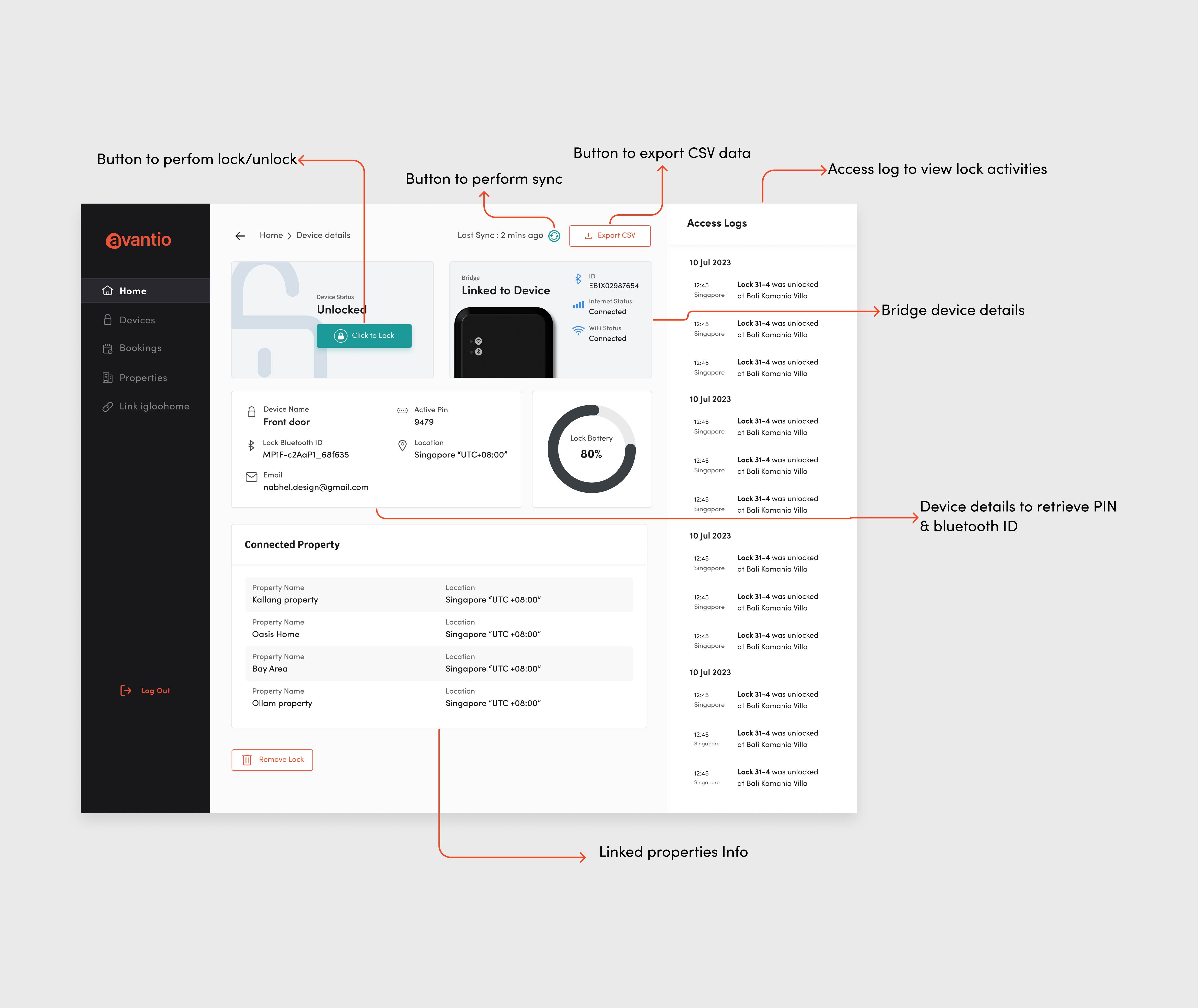 I led the redesign and launch of Avantio Integration Portal 2.1 in partnership with igloohome to simplify guest access management for vacation rental property managers. The project centralized smart lock, booking, and access control features within the Avantio dashboard, eliminating the need to switch between multiple platforms and improving efficiency, accuracy, and overall user experience.