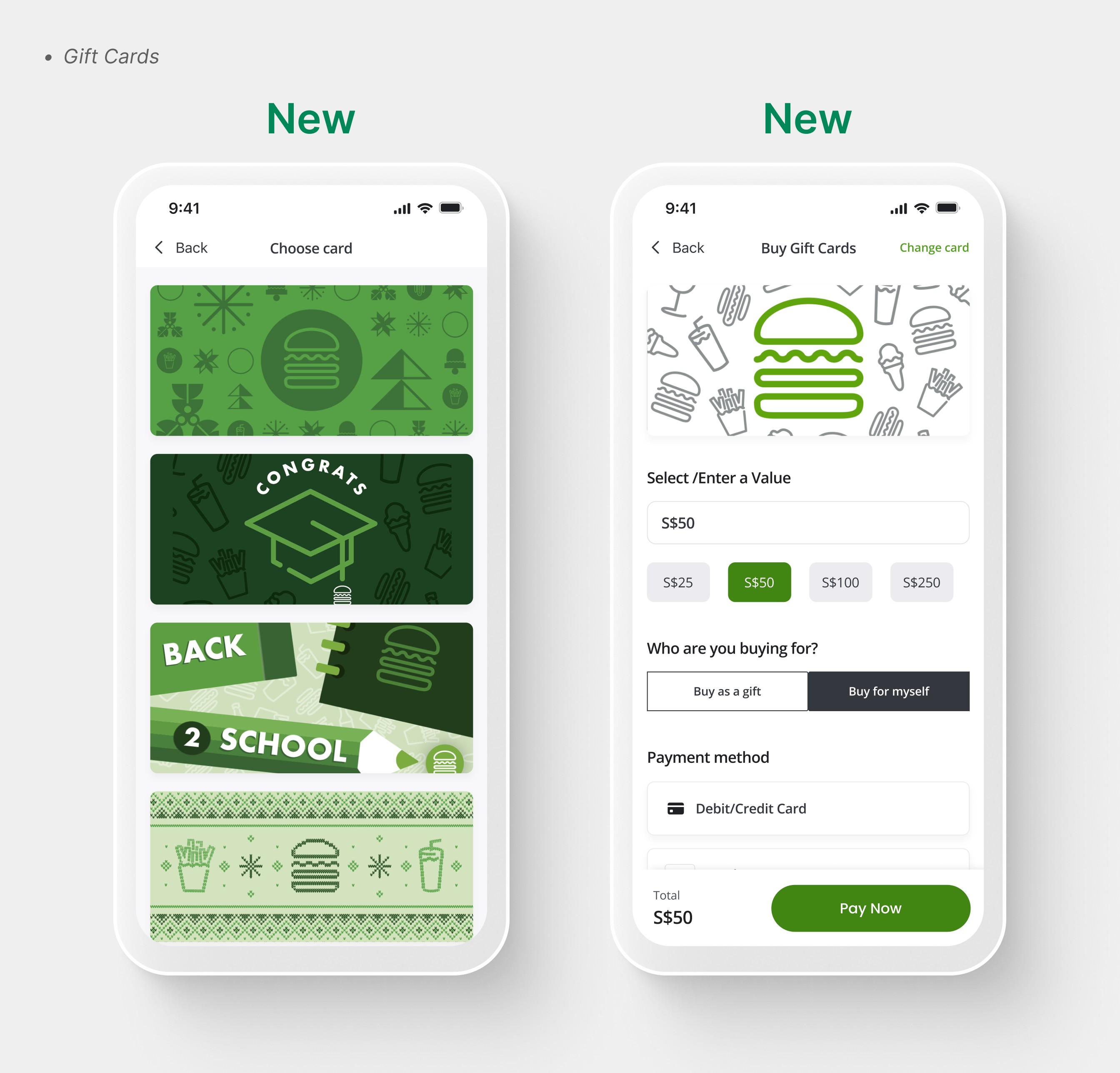 To enable scale and consistency, I established a shared component library and standardized interaction and visual patterns across iOS and Android in close partnership with engineering. I then focused on reducing friction at the highest-impact moments, simplifying onboarding, streamlining menu access, improving checkout while supporting new payment integrations, and elevating loyalty to a core.